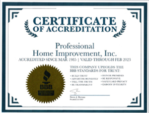 Professional Home Improvement is certified by many national brands and belongs to several recognized affiliations.